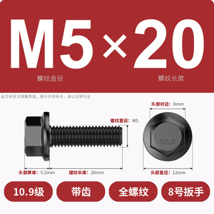 8.9段外六角フランジ面ねじ高強度GB5789プラスキャップ付マット付歯付ボルトM6M8-M20