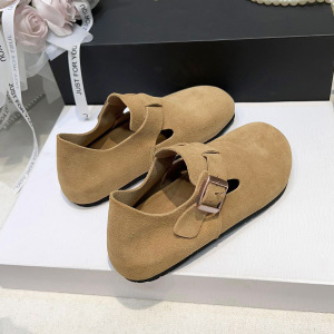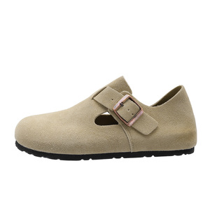 三喜同款勃肯鞋灰绿色真皮全包休闲单鞋2025新款懒人一脚蹬博肯鞋