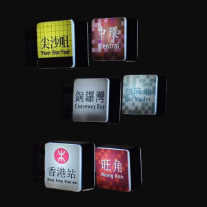 香港地下鉄のランプが点灯している冷蔵庫には、中環尖沙ノズル油麻地虹駅のブランド旅行カード記念品が貼られている