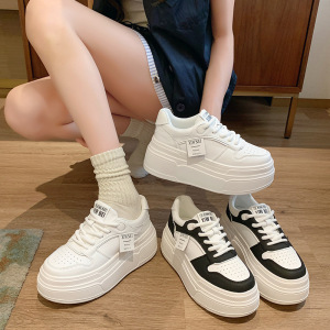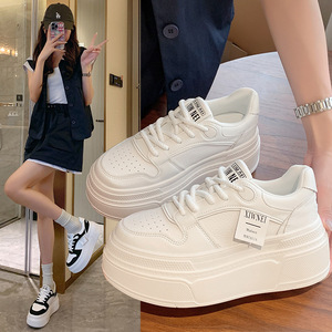 厚い底の中で高くなって板の靴の女性の2025春の新型のファッションのカジュアルな爆発のビスケットの靴の超火の白い靴の女性の靴