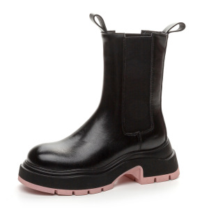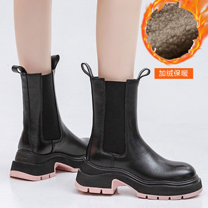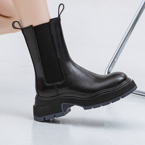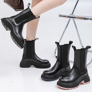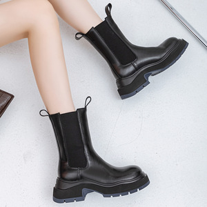 2025年春夏新作 本革 厚底 ハイヒール マーティンブーツ レディース ブラック ラウンドトゥ ブーツ チムニー型ブーツ レディース トレンド 厚底