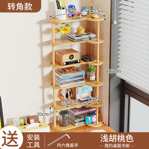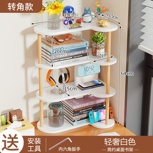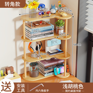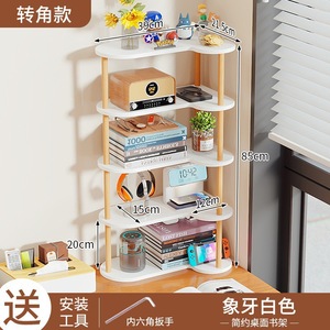 本のデスクトップの角の本棚の収納物の多層棚のテーブルの上で整理します。
