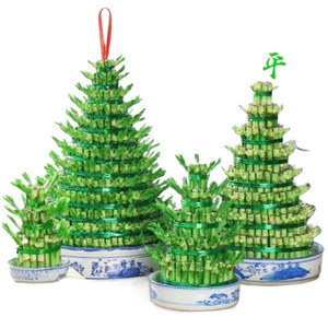高貴な竹、水栽培竹塔、水耕植物、鉢植え観音竹、リビングルームの幸運と富の竹、多層