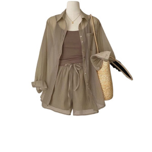 D2G【店舗人気】薄い日焼け止めシャツの上着が痩せているキャミソールがゆったりしているパンツ女性