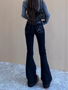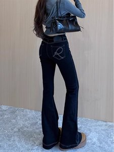Fu ivの大きいサイズのアメリカ式のポケットの刺繍のマイクロラッパのジーパンの女性の2025春の新型のハイウエストはやせている弾力のズボンを現します。