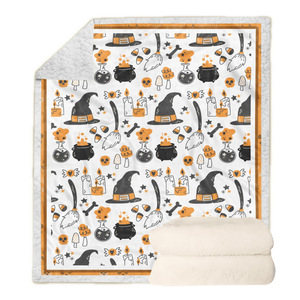 シャルバ毛布ハロウィーン魔女模様プリント二重毛布カボチャ毛布子供大人布団人気