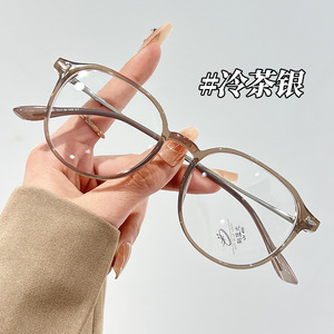 小顔茶色のメガネフレーム女性用美白近視メガネフレームアイフレーム抗青色光フラットミラー 1443