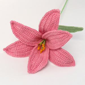 完成品クロスボーダーウールニットユリの花の枝家庭用家具装飾暖かい雰囲気かぎ針編みブーケ卸売
