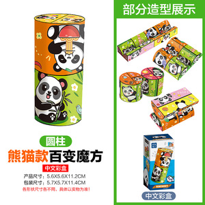 【円柱型】磁石なし - パンダデザイン変幻自在ルービックキューブ(中国語カラーボックス入り)79g