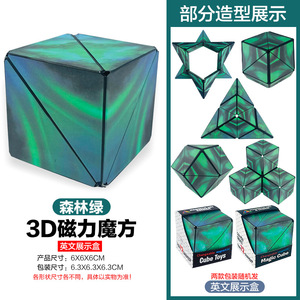 【フォレストグリーン】マグネット内蔵モデル・大型バラエティルービックキューブ(英語表示ボックス) 131g