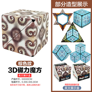【ブラウンパターン】マグネット式・大型バラエティルービックキューブ(英語表示ボックス) 131g