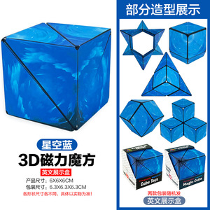 【星空ブルー】マグネット内蔵型 - 大サイズ変幻自在ルービックキューブ(英語表記ボックス)131g