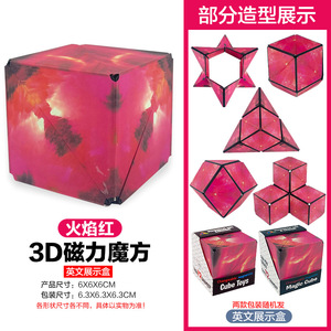 【フレイムレッド】マグネット内蔵モデル・大型バラエティルービックキューブ(英語表示ボックス) 131g