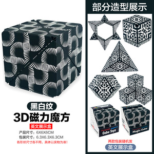 【白黒パターン】マグネット式・大型バラエティルービックキューブ(英語表示ボックス) 131g