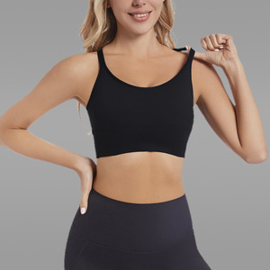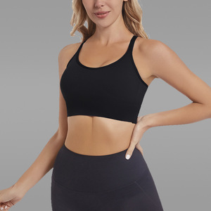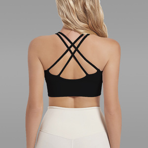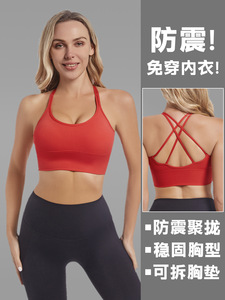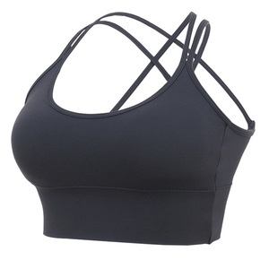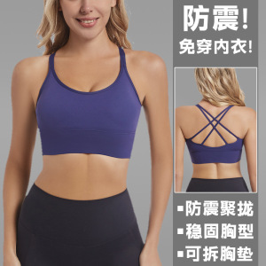 欧美紧身运动文胸女带胸垫交叉美背跑步健身外穿训练瑜伽背心内衣