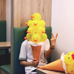 爆発的なアイスクリームの甘い筒風船の花束の材料のセットの屋外の写真の道具は夜市を広げます。