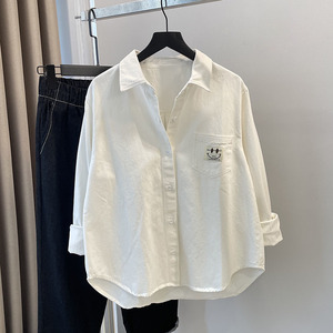 秋冬の小柄な白いシャツの女性の長袖の新型の韓範のカジュアルな百合は重ねて底の明かりの芯の絨毯の厚い裏地を着ます。