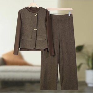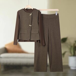 中年ママ春服セット2025新型中高年女装春秋ファッションベストコート上着3点セット