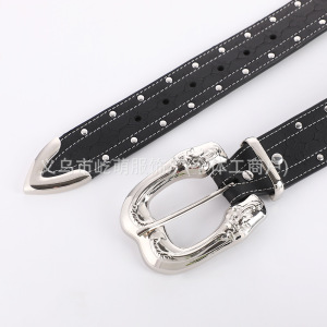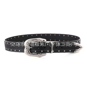 カスタマイズされたトレンディなリベットウエスタンスタイルの第一層牛革ベルト、パーソナライズされた多用途ピンバックルジーンズレザーベルトヨーロッパとアメリカ