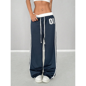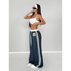 街頭のファッションブランドのストライプのカジュアルなズボンの女性のアマゾンは国境を越えて2025年に新型の衝突色のゆったりしたストラップに合わせてズボンを合わせます。