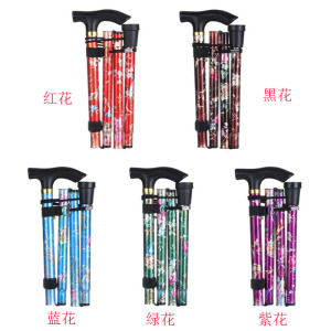 緑の花が付いた 5 つのセクションの高齢者の松葉杖