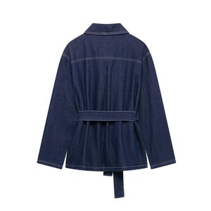 Ins風欧米風対外貿易婦人服新型2025ファッションベルト襟付きカウボーイコート高腰ズボンセット