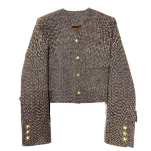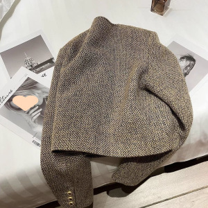 2025ショートモデル春秋新型シンプルフランス気質名媛波紋香風上着カーディガンコート