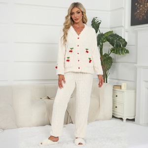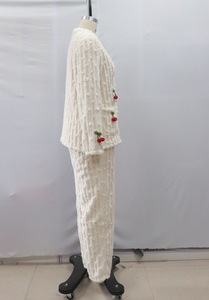 秋冬越境欧米風両面ジャカード舒綿毛ベージュパジャマさくらんぼ上着とズボン2点セット