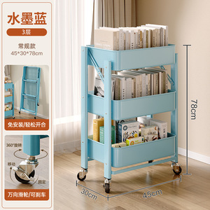 机の下の本棚の物置棚の移動カートの車輪付きテーブルのそばに神器を入れます。