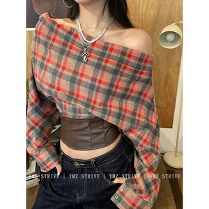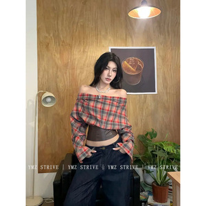 【30日間の人気は1999件】ストライプ/尤美子微太ったmmギャルデザイン感のある肩シャツ女