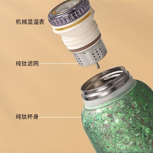 純チタン大容量煮込みティーポット家庭用機械式温度表示チタンケトル断熱オフィスティー作り抗菌ケトル魔法瓶カップ