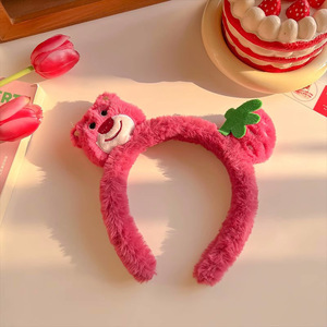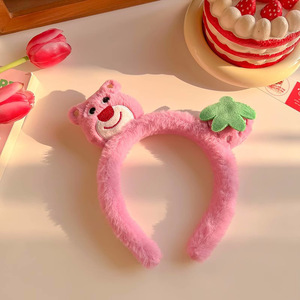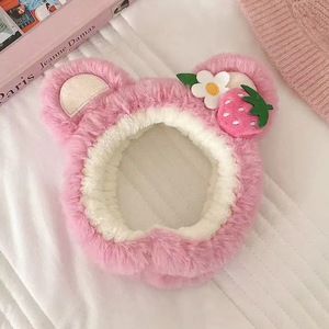 かわいいいちごの花ウサギの耳のヘアバンドの女性の顔を洗って滑り止めのカチューシャをつけてマスクの専用のカチューシャの髪飾りをつけます。