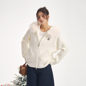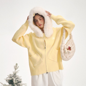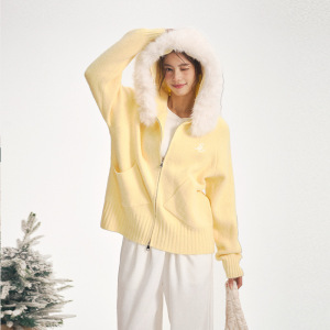 INSLiiSAの柔らかいモチモチとした怠惰な風の優しさと帽子の毛の襟のニットの女性の春秋の新型のカジュアルなセーター