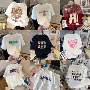 2025新型半袖tシャツ夏のゆるい大きいサイズのシャツ女性カジュアル上着ファッションプリント学生服