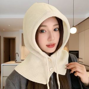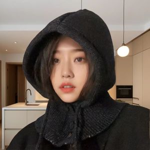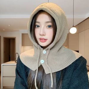 韓国のバラクラファー帽子秋冬カップルファッション保温帽子マフラー一体ニット耳保護ウール帽子