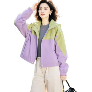 2025超火春装高級感超美しい突撃服女性減齢美しい洋気カジュアル紫連帽コート