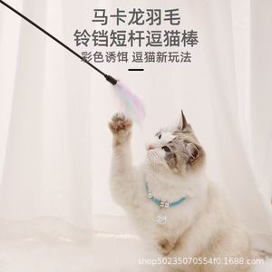 マカロンのアンドロメダは猫の棒の長い羽の鈴をからかって猫の棒の猫を笑わせます。