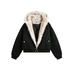 秋冬の新型アメリカの座山彫刻の毛襟とベルベットの厚い綿服ジャケット男女冬の工装カップルコート