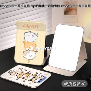 かわいい猫女子寮のオフィスは折り畳み化粧鏡のデスクトップの小さな鏡を持ち歩いている