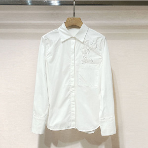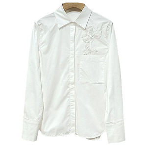 1枚から2025春新女装フランス襟刺繍綿白シャツ長袖上着S250237