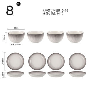 厚みのあるアップグレードモデル【8個】丼*4+丸皿*4