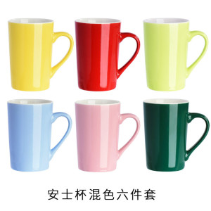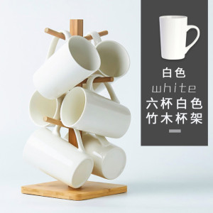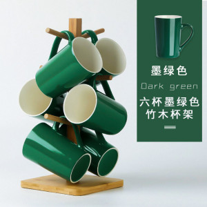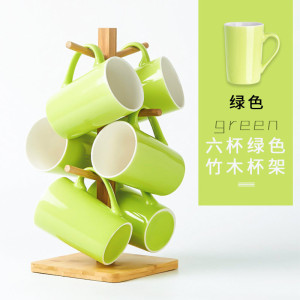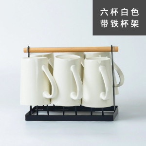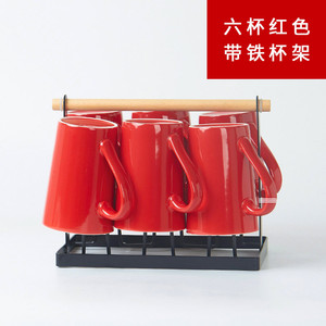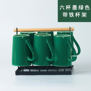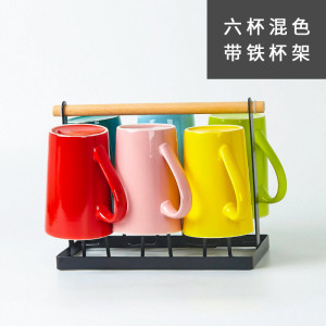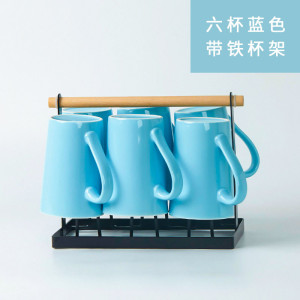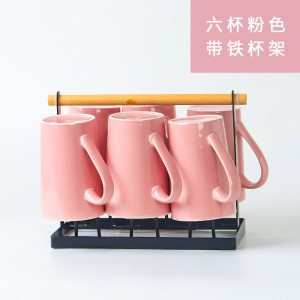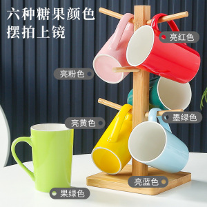 マグカップ純色セラミックカップシンプルなオフィスコーヒーカップ家庭用大容量水を飲むins6個セットにスタンドを付ける
