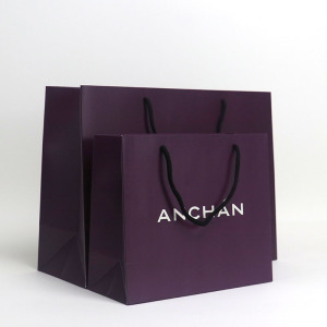 濃い紫色の花防止膜高級ファッション手提げ紙袋現物服装店女装ファッション春夏包装袋