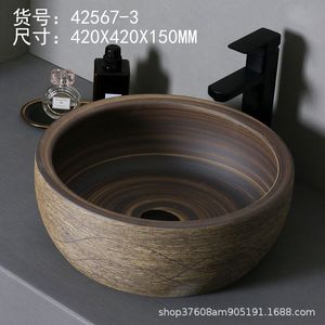 レトロな台の上のたらいは古い輸出の屋外の洗面器の庭の芸術のたらいのトイレの陶磁器の洗面器のベランダをまねて洗います。
