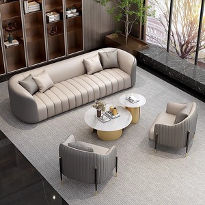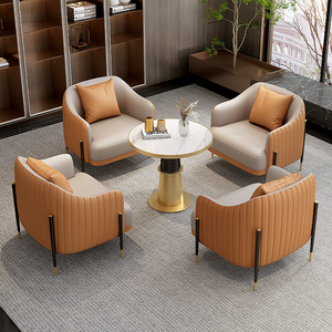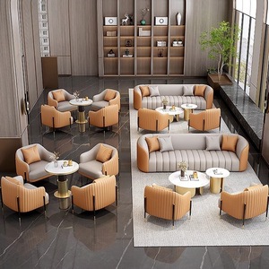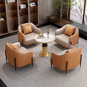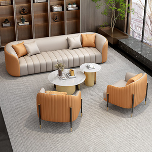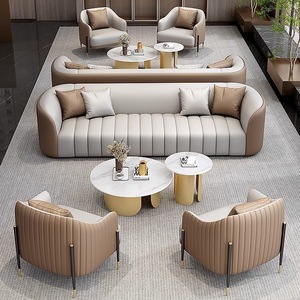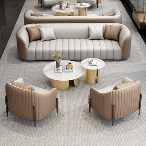 酒店大堂售楼处美容院皮艺沙发茶几办公洽谈会客直排钢琴沙发组合