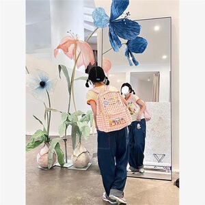 太陽を植えましょう。オリジナルのKittyピンクの格子のリュックサックが可愛いです。