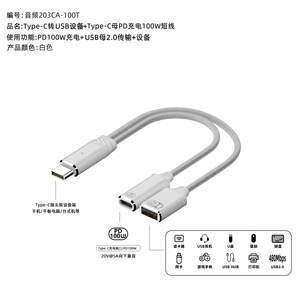 【USB2.0+typec to TypeC ホワイト】1対2ショートケーブル