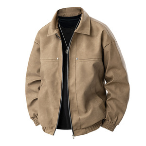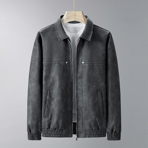 2025新型皮衣男コート春秋新型アメリカ復古襟皮衣男ファッション百合高級感メンズ