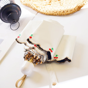 日系刺繍さくらんぼ五つ折り傘小型日除け傘紫外線防止女性携帯両用黒ゴム日傘
