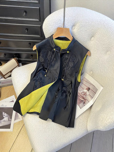 重工刺繍ベスト女性2025早春新盤ボタン復古新中国式国風ノースリーブコート馬クリップ